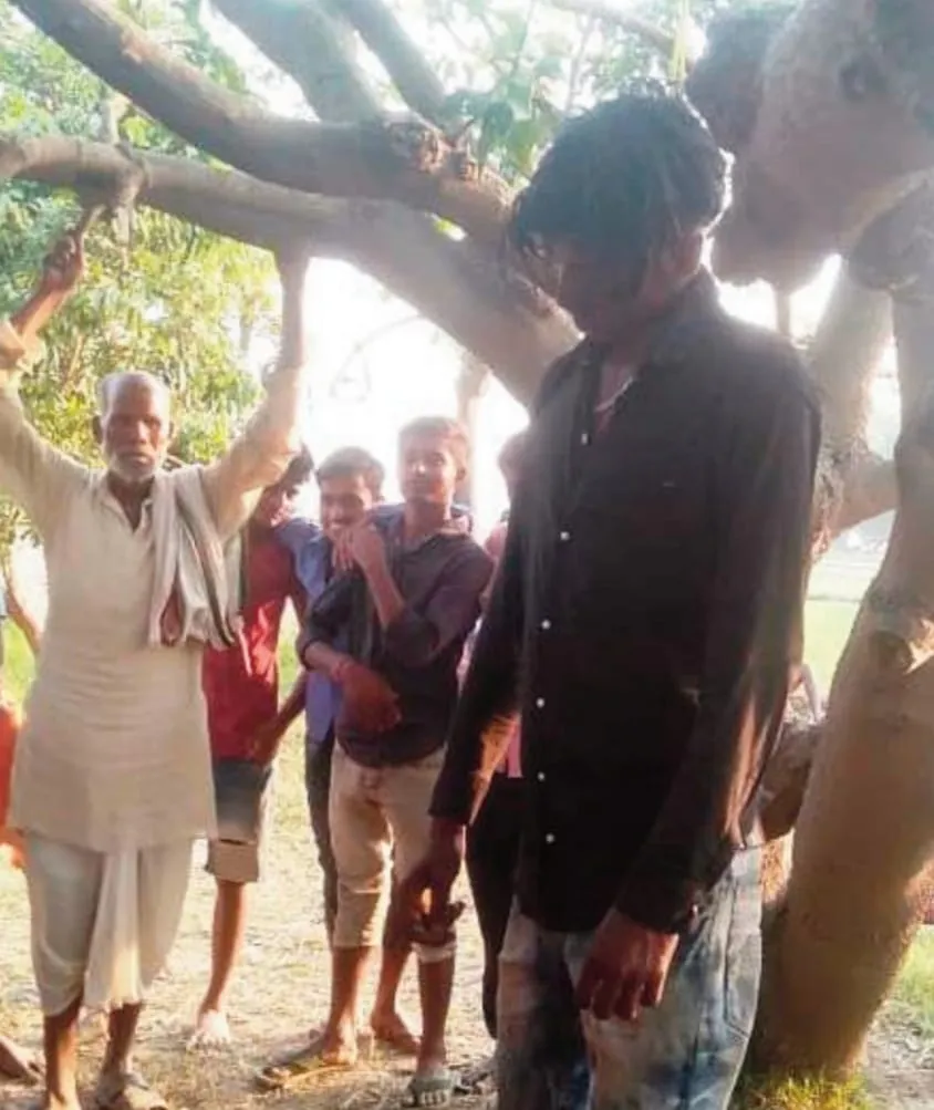 लाश को पेड़ पर लटके देखकर सभी ग्रामीण औचक हो गए