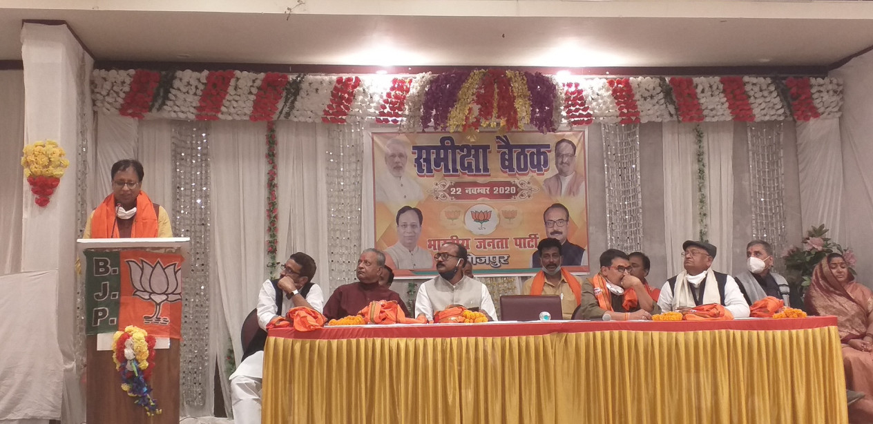 भाजपा की समीक्षात्मक बैठक में भाजपा पंचायती राज के प्रदेश संयोजक ओम प्रकाश भुवन,विधि प्रकोष्ठ के प्रदेश संयोजक तारकेश्वर ठाकुर,भाजपा के पूर्व जिलाध्यक्ष सुरेश सिंह,भाजपा के जिला उपाध्यक्ष लव पाण्डेय,आदित्य विजय प्रताप सिंह,महामंत्री अभिषेक राय,जिला प्रवक्ता संजय सिंह,नवीन प्रकाश, कोषाध्यक्ष दीपक सिंह,आईटी प्रकोष्ठ के जिला संयोजक कुमार गौतम,किसान मोर्चा के जिला संयोजक रंग बहादुर यादव, व्यवसाय मंच के जिला संयोजक प्रेम पंकज उर्फ ललन जी, भाजपा के नगर अध्यक्ष जीतू चौरसिया सहित कई पदाधिकारी शामिल थे।