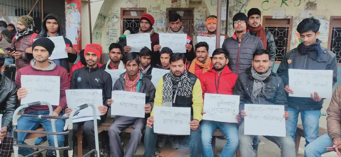 बिहार यूनिवर्सिटी से कॉलेजों में और सीट बढ़ाने की मांग को लेकर बिहार नवयुवक सेना द्वारा प्रदर्शन