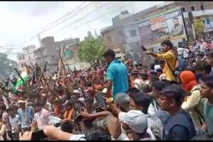 मोतिहारी। शहर में केंद्र सरकार द्वारा लाई गई शॉर्ट टर्म सैनिक योजना ‘अग्निपथ’ के विरोध में गुरूवार को युवा व छात्रों ने जमकर बवाल काटा। हजारों की संख्या में छात्रों ने चांदमारी रेलवे गुमटी जाम कर दिया। रेलवे गुमटी करीब... मोतिहारी में भी अग्निपथ योजना का विरोध शुरू, सड़क पर उतरे छात्र, आगजनी कर की नारेबाजी